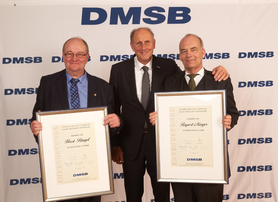 Silberne Ehrennadel des DMSB überreicht durch den Präsidenten Hans Stuck für Horst Bingel